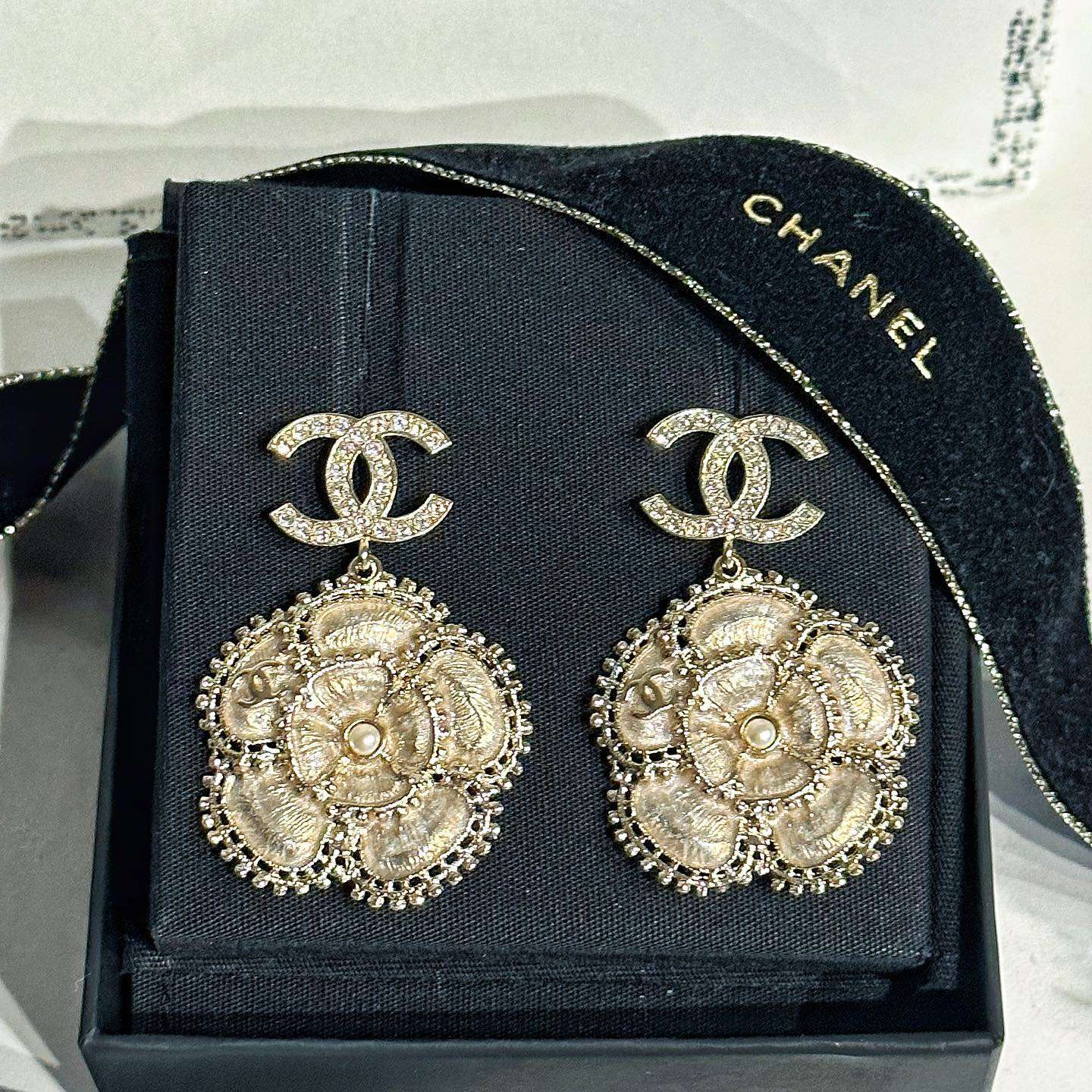 シャネルの最も愛されているシンボルであるカメリアの花は、ピアスの定番です。繊細でフェミニンなこれらのピアスは、あらゆる装いにエレガントなタッチを加えます。